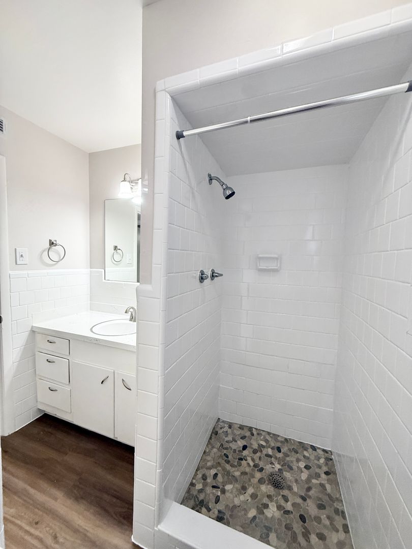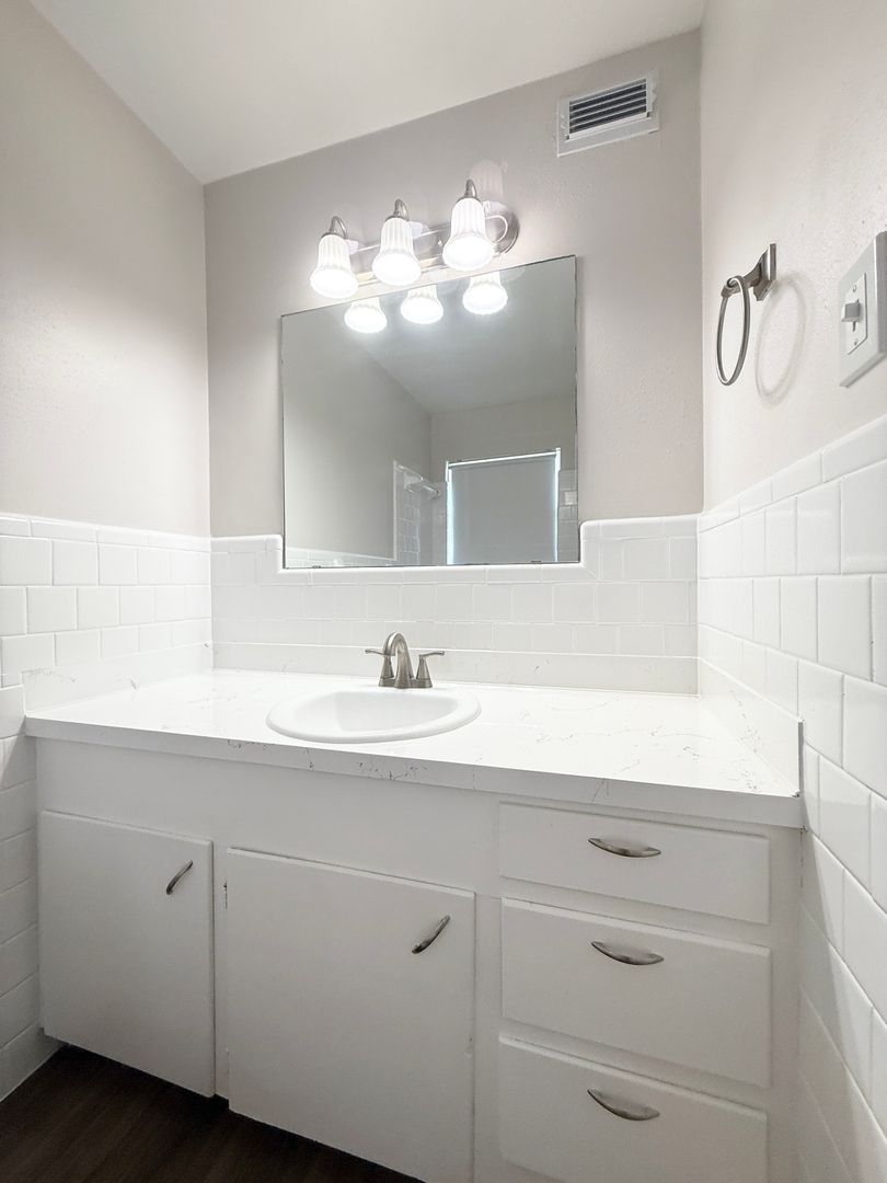 1 month free with 13 month lease with move-in by 10/31/25! Upstairs corner 2/2 in Small Complex w/ pool, fresh paint, updated fixtures and hardware, luxury wood plank vinyl throughout w/ new carpet in bedrooms, kitchen features recent appliances and breakfast bar, new 2” blinds, central ac and heat, dishwasher, one covered parking space included, on-site laundry, very nice unit, Call 713-622-4805, REF # WILC8