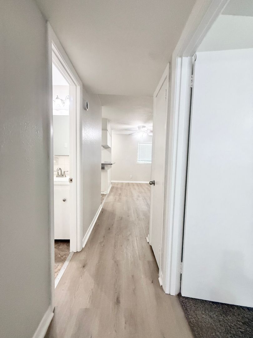Adorable Upstairs 2/1 in small 26 unit complex, recent paint, luxury wood plank vinyl floor w/ recent carpet in bedrooms large living / dining room combo, central ac and heat, recent appliances, updated fixtures and hardware, good closet space, off-street parking, on-site laundry, call to see today!! call 713-622-4805, REF # KAY0103